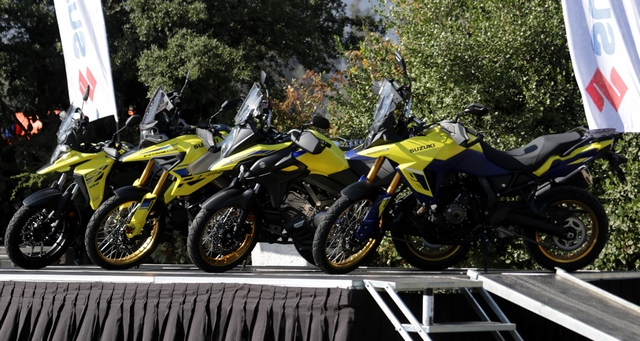 2.- La serie Suzuki V-Strom: De izquierda a derecha: 250 SX, 1050 DE, 650 XT y 800 DE.