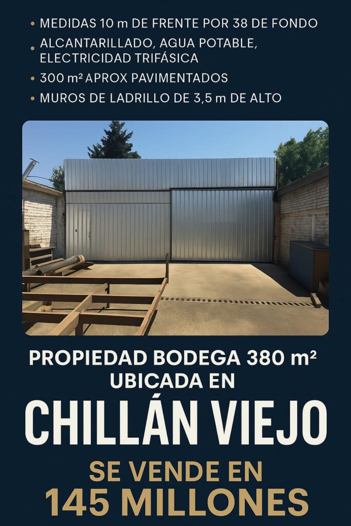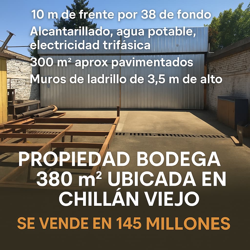 #BodegaEnVenta #ChillánViejo #InversiónInmobiliaria #PropiedadesÑuble #VentaDeBodega #OportunidadComercial #SurPropiedades