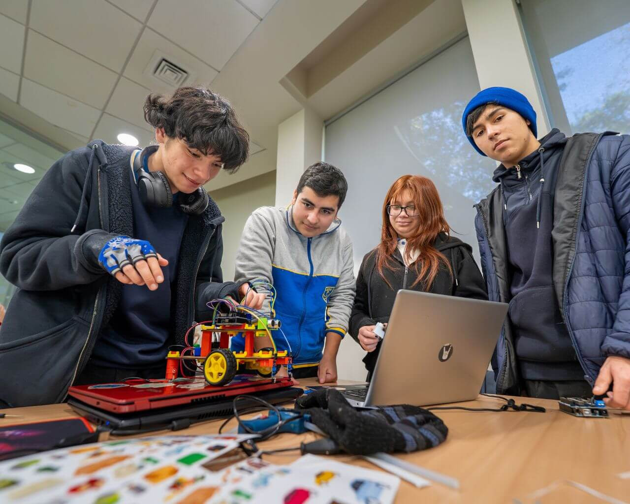 Con entusiasmo, alumnos y alumnas de establecimientos educacionales construyeron robots evita obstáculos en el evento impulsado por la Casa de Estudios y la Embajada de EE.UU.