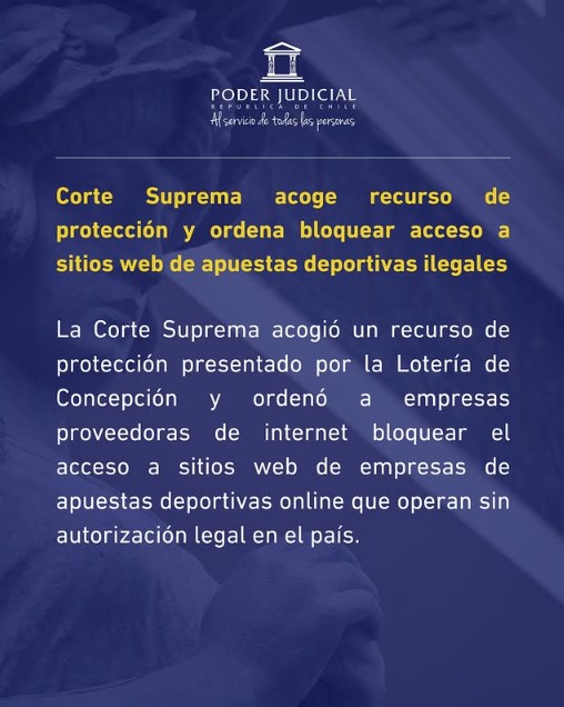 La Corte Suprema acogió un recurso de protección presentado por la Lotería de Concepción y ordenó a empresas proveedoras de internet bloquear el acceso a sitios web de empresas de apuestas deportivas online que operan sin autorización legal en el país.