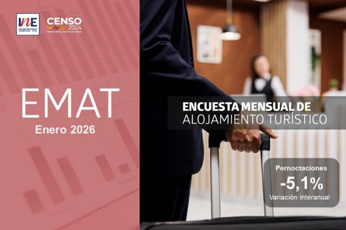 Las pernoctaciones de pasajeros en establecimientos de alojamiento turístico en la región de Ñuble (número total de noches que las personas alojaron) llegaron a 41.864 en enero de 2026, lo que implicó un descenso de 5,1% respecto al mismo mes del año anterior. Así lo revela la Encuesta Mensual de Alojamiento Turístico (EMAT) publicada esta mañana por la Dirección regional del Instituto Nacional de Estadísticas (INE).