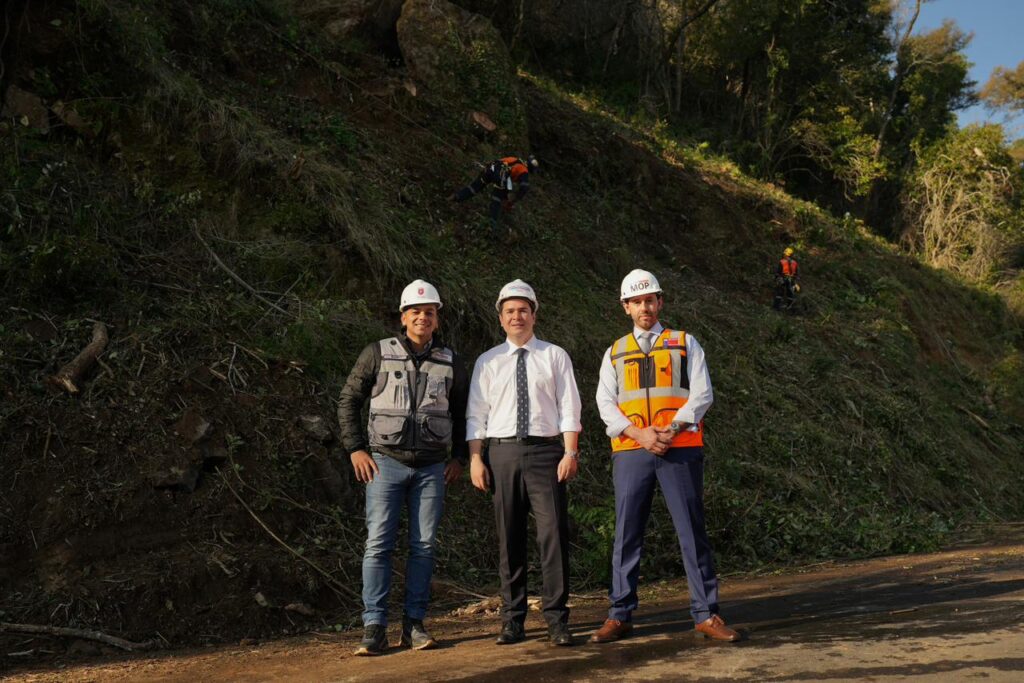 El Delegado Presidencial, Diego Sepúlveda junto al Alcalde de San Fabián, Cristofer Valdés y el Seremi de Obras Públicas, Luis Carrasco encabezaron el inicio de los trabajos para la instalación de mallas de protección en la Ruta N-31 en la comuna de San Fabián, una vía estratégica que conecta San Carlos con San Fabián.